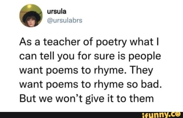 However! I maintain that reading Latinx poetry is a deeply weird way to study historical things. Harjas says he’s willing to give the professor the benefit of the doubt; I, personally, think all poetry that doesn’t rhyme is garbage, so am not.4